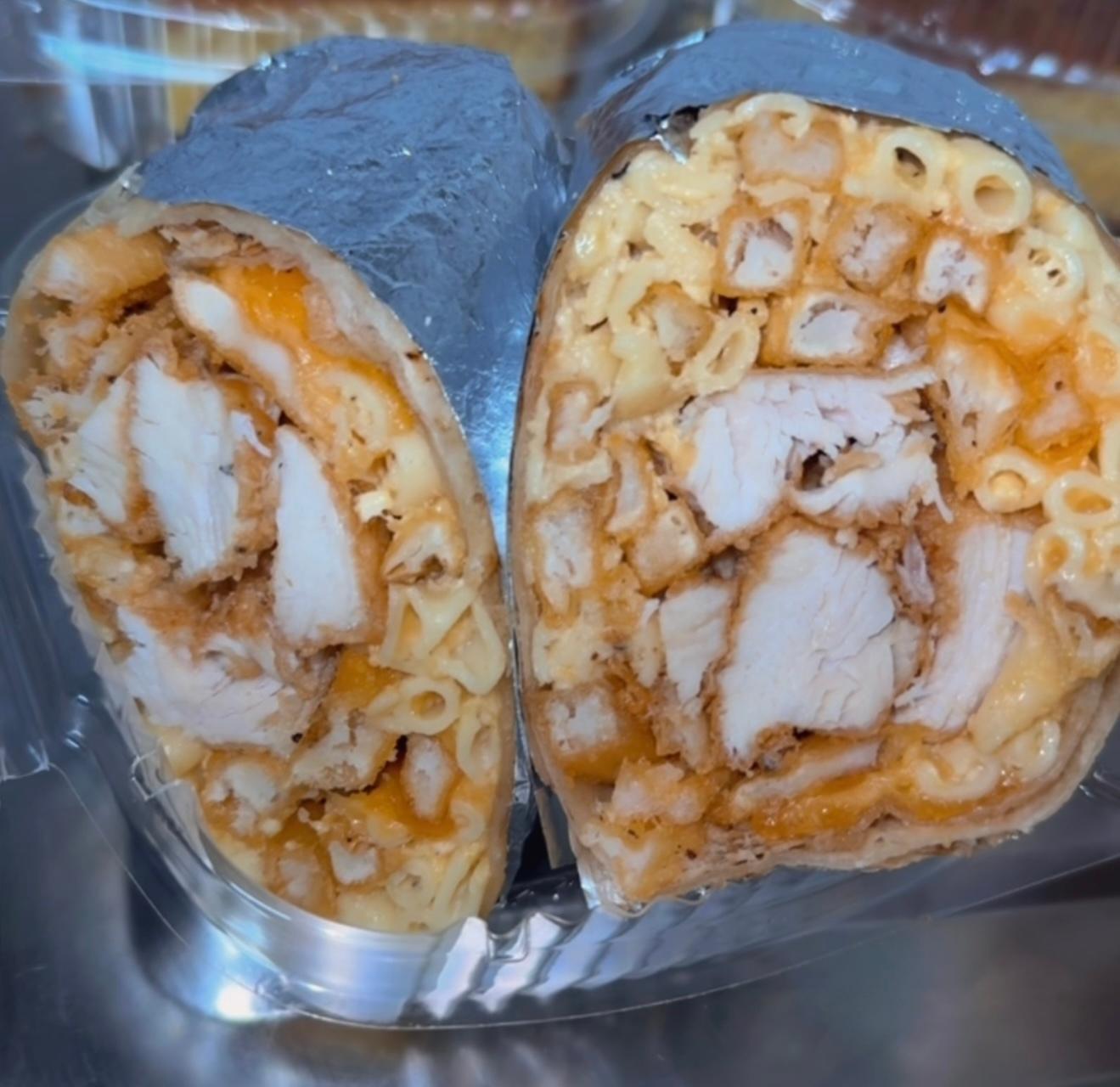 Our Soul Food Burrito includes fried or grilled chicken with 2 sides of your choice all wrapped up in a warm burrito! Please note, items are not separate and will come all together wrapped in the burrito as pictured.
