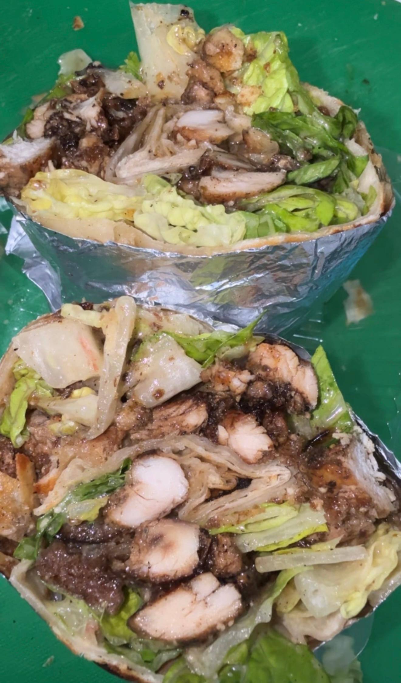 Chopped grilled chicken, lettuce, croutons with caesar dressing wrapped in a warm tortilla. Best paired with our Cayman Sauce.