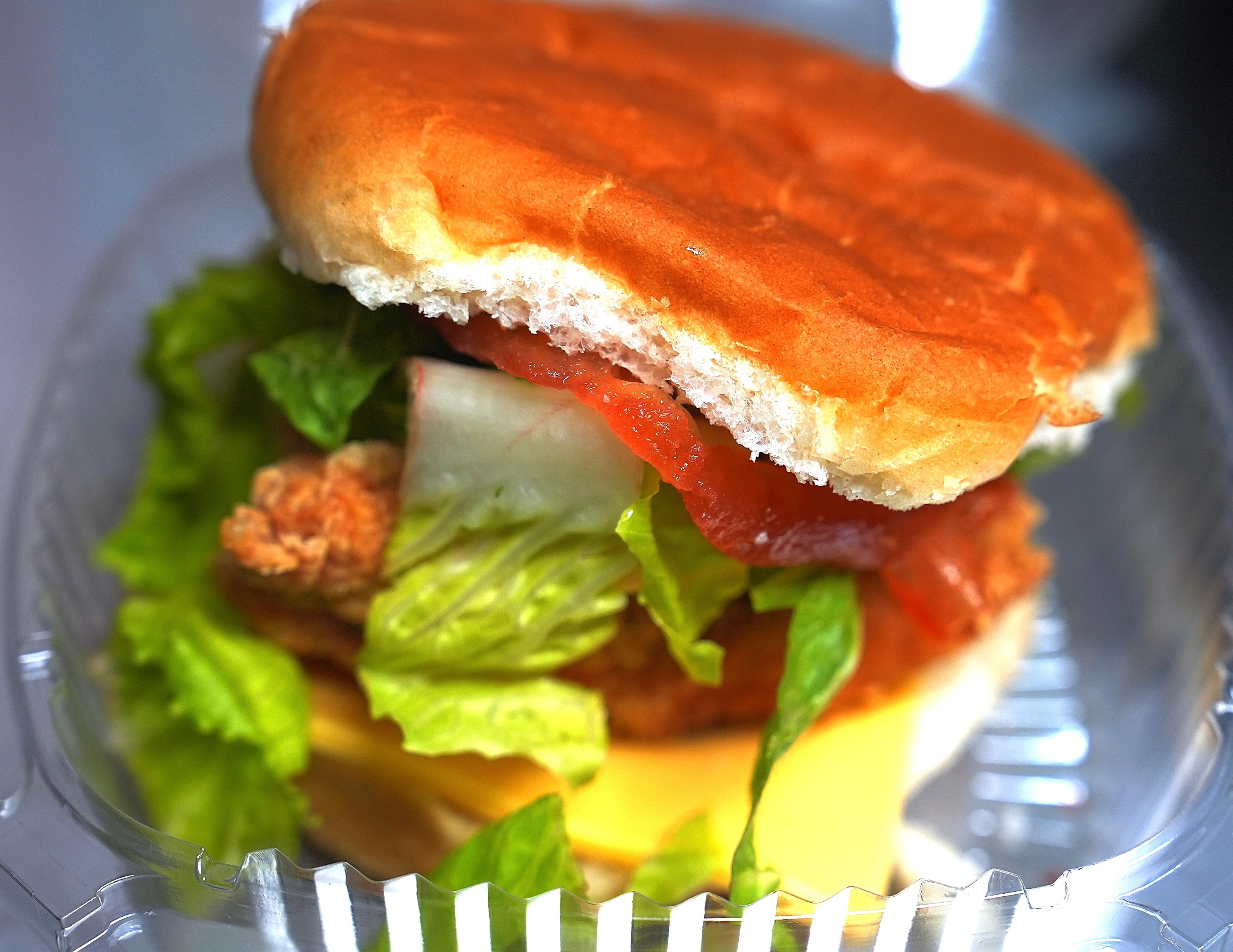 Fried chicken breast on a bed of lettuce and tomato, on a soft bun. Paired best with our Cayman Sauce (Sweet and Spicy Honey).